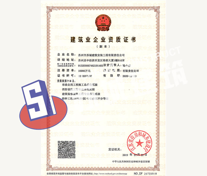 蘇州市蘇城建筑安裝工程有限責任公司,擁有主項建筑工程施工總承包一級資質(zhì),增項市政公用工程施工總承包二級資質(zhì)和建筑裝修